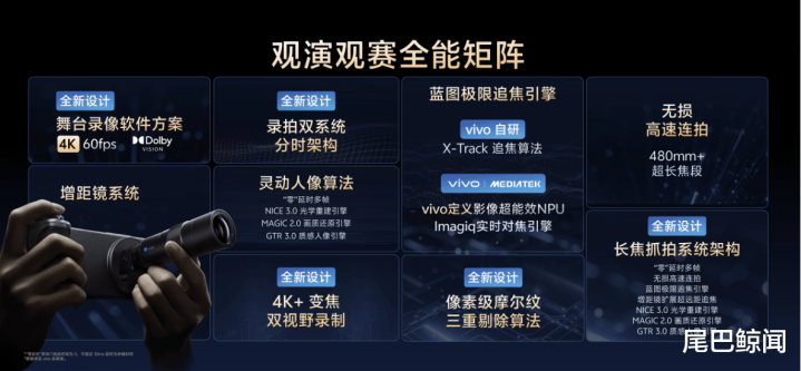 以前拍舞台总怕黑、怕糊、怕抓不到人?X300系列专治痛点。新“灵动人像算法”整合多帧合成和三大引擎,昏暗舞台也能精准抓人脸,氛围感拉满。创新的“录拍双系统”让你录4K视频时,还能同步拍高清照片,分辨率暴涨355%,成片率提升35%,再也不怕错过精彩瞬间。