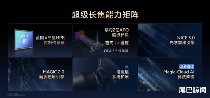 这次主打“蔡司影像大小王”组合:X300 Pro的“大王”是2亿像素APO超级长焦,用上vivo和三星独家定制的“蓝图×HPB”传感器,底大到1/1.4英寸,加上VCS仿生光谱技术,拍远处的演唱会、球赛就像把望远镜装手机上。镜头用了1组玻璃+5片塑料的潜望设计,还有萤石级超低色散镜片和蔡司T*镀膜,色散控制一流,画面干净得像洗过。防抖直接干到CIPA 5.5级,比上代多扛100%曝光时间,手抖星人也能稳稳出片。算法上NICE 3.0和MAGIC 2.0双引擎加持,20倍以上变焦成片率提升20%,清晰又自然。