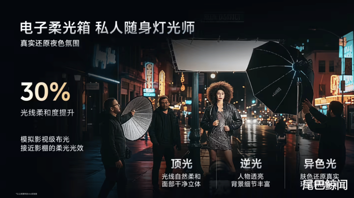 拍人像视频直接上电影级:蓝图影像芯片V3+和天玑9500双芯合体,首发4K 60fps电影人像视频,虚化、肤质、光影都像电影大片。Live Photo也升级了,安卓端首次实现“路人消除”,背景乱入的路人一键消失,每张动态图都是专属记忆。夜景人像用“电子柔光箱”算法,顶光逆光都不怕,拍烟花时人脸和烟花都清晰明亮,层次感十足。