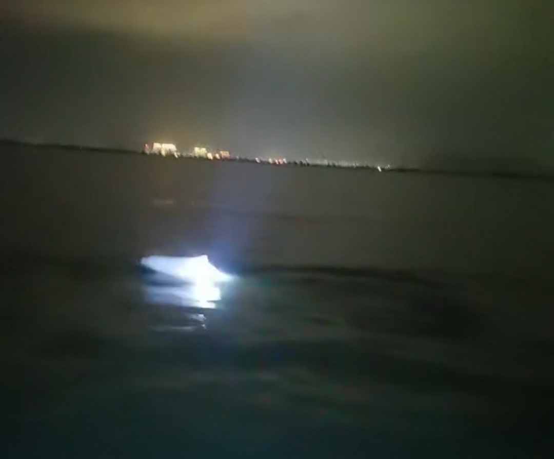 1月14日晚上21时许,深汕鲘门百安半岛海域又惊现海豚。事发当时,一位附近的渔民开船经过百安半岛东侧海域,通过灯光,突然发现一头白色海豚在游水。