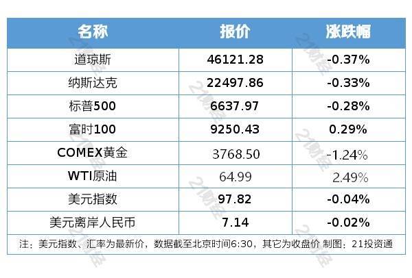 纽约股市三大股指9月24日下跌。截至当天收盘,道琼斯工业平均指数比前一交易日下跌171.50点,收于46121.28点,跌幅为0.37%;标准普尔500种股票指数下跌18.95点,收于6637.97点,跌幅为0.28%;纳斯达克综合指数下跌75.62点,收于22497.86点,跌幅为0.33%。